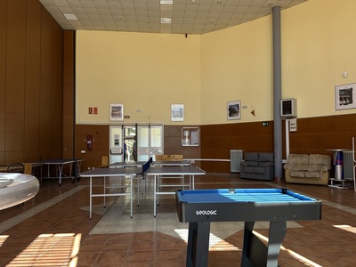 El Edificio Social se diseña como hito y punto principal de acceso al Campus universitario, al estar situado en la plaza de entrada al mismo y entre dos viarios principales; en el se recogen una cafetería - bar, una sala destinada a comedor universitario y otra de usos polivalentes. Se trata de una edificación en la que se mezclan los sólidos de un cilindro y un cubo y, entre ambos volúmenes, se posibilita el paso a una pérgola de paseo que recorre la manzana residencial de sur a norte.