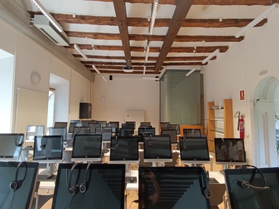 - Dos laboratorios con capacidad para 24 personas. Disponen de altavoces, proyector y pantalla de proyección.Primera planta.
