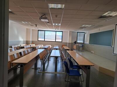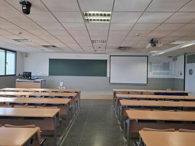 - Aulas 0.4, 0.5 y 1.2 con capacidad para 38 personas. Disponen de ordenador, proyector y pantalla de proyección.