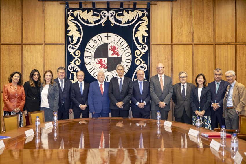 Los vicerrectores del Campus de Guadalajara, Carmelo García, y de Innovación Docente y Transformación Digital, Héctor del Castillo, asistieron a la presentación de este gran acuerdo del gobierno liderado por Emiliano García-Page y los agentes sociales