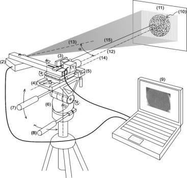 El sistema FP+2D-DIC desarrollado es un dispositivo portátil que combina, alinea y calibra ambas técnicas de FP y 2D-DIC. Básicamente consiste en una cámara de color, que visualiza la muestra, unida a un proyector de franjas, que proyecta sobre la misma franjas azules y blancas, fijadas sobre un cabezal que permite ajustar con precisión inclinaciones y desplazamientos (ver la figura). La alineación y calibración del sistema se realiza a través de una original interfáz gráfica de usuario, que controla el dispositivo y realiza una serie de procesado de imágenes. La superficie de la muestra debe tener un patron de moteado aleatorio rojo sobre fondo blanco. De esta manera, solo se requiere una imagen en color (de cada etapa de carga de la muestra) para calcular los mapas de desplazamiento 3D. La información del moteado se puede separar de la información de las franjas utilizando simplemente los canales azul y rojo de la cámara. A continuación, ambas informaciones se procesan por separado para obtener desplazamientos en el plano (dirección-x e -y) y fuera del plano (dirección-z) para cada elemento de superficie utilizando los algoritmos 2D-DIC y FP, respectivamente. Finalmente, ambos resultados se complementan para realizar correcciones de aumento de la lente y mejorar la capacidad de medida. Algunos ejemplos de aplicación son: